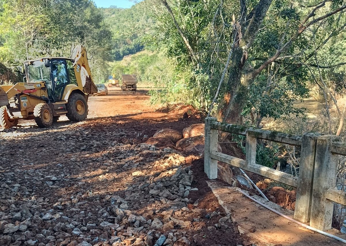 Iniciou nesta segunda-feira os trabalhos de recuperação de um trecho crítico da rodovia que cedeu entre o município de Marcelino Ramos e as pontes da comunidade de Teixeira Soares