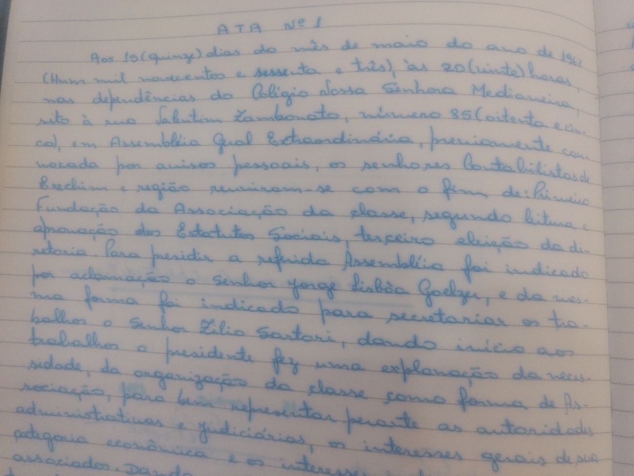 Associação fundada em 1963 busca unir profissionais da cidade. Primeira ata revela história da Associação dos Contabilistas de Erechim