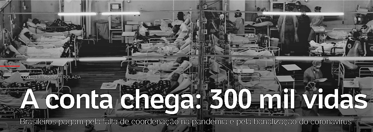 Então, a pandemia chega ao Brasil e esses números que nos deixavam estarrecidos, banalizou e chegamos a 300 mil mortes pela Covid, ontem (24). Mais de 3,2 mil mortes num único dia. Pelo comportamento da população, os mortos do Velho Continente nos comovem mais, são mais importantes.
