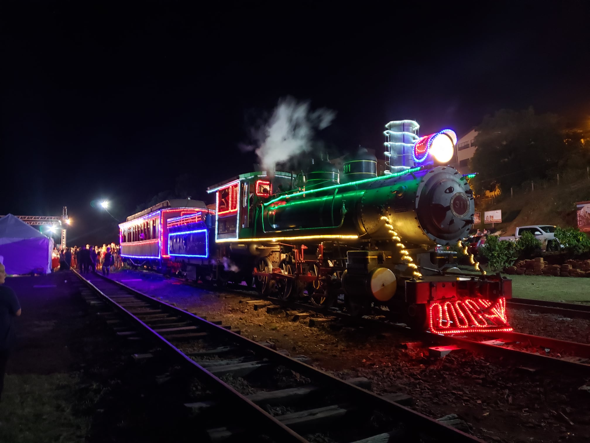 Por volta das 20h30, o mestre de cerimônias pediu silêncio para que todos que estivessem no local pudessem escutar a aproximação da centenária e histórica Maria Fumaça na cabeceira da ponte em Santa Catarina. Como num passe de mágica, o silêncio tomou conta e um grande e inconfundível apito surgiu, ecoando entre as montanhas. O trem entrou na ponte e a escuridão deu lugar para luzes encantadoras, que avançavam lentamente em direção do público. Dentro do vagão, puxado pela máquina, o astro da noite: O Papai Noel e mais personagens infantis.
