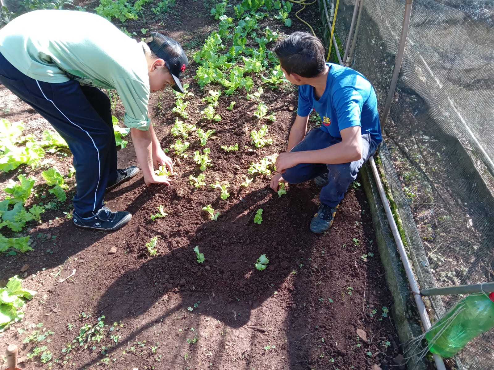 A escola Nossa Senhora das Graças tem 20 alunos, do 6º ao 9º ano, que auxiliam na manutenção e cuidados do pomar, de duas estufas e da composteira. Os alimentos produzidos são utilizados na merenda escolar. “Nós temos uma sustentabilidade na alimentação dos estudantes. São produtos naturais, sem defensivos agrícolas, produzidos totalmente por eles”, explica a diretora.