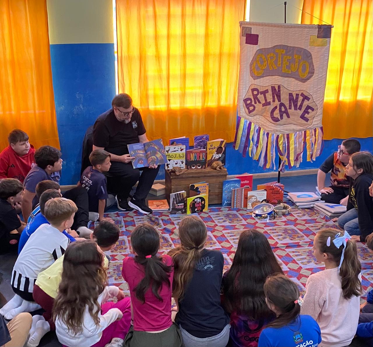 A Secretaria Municipal de Educação de Marcelino Ramos promoveu, nos dias 3 e 12 de novembro, sessões de mediação de leitura do projeto “Mojubá”, conduzidas pela Dueto Produções Culturais e Artísticas Ltda., produtora erechinense especializada em literatura e artes cênicas. As ações integram o “Cortejo Brincante”, iniciativa que se desdobra em oficinas e sessões de leitura voltadas a diferentes temáticas, com destaque especial para o Dia da Consciência Negra, celebrado em 20 de novembro.