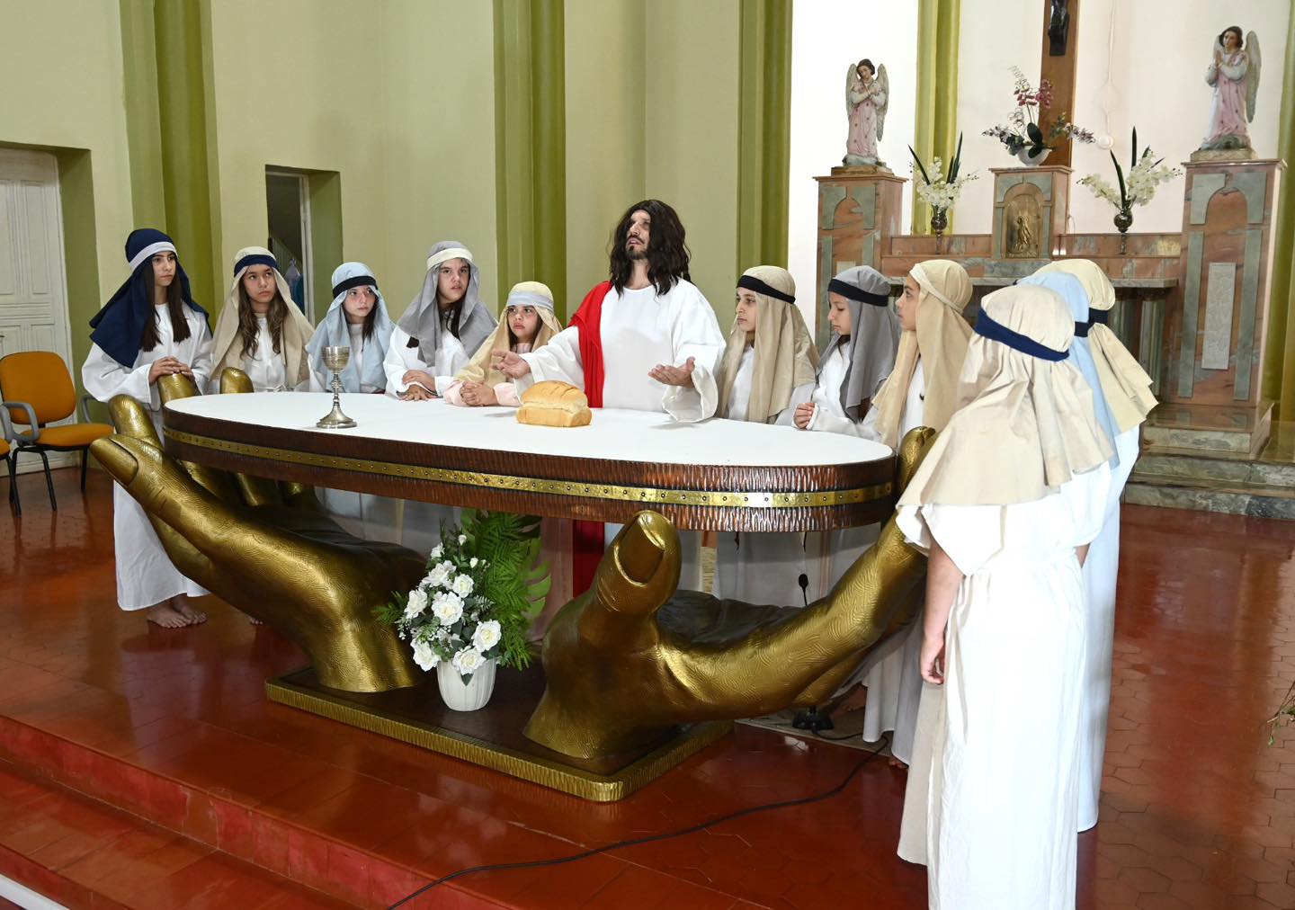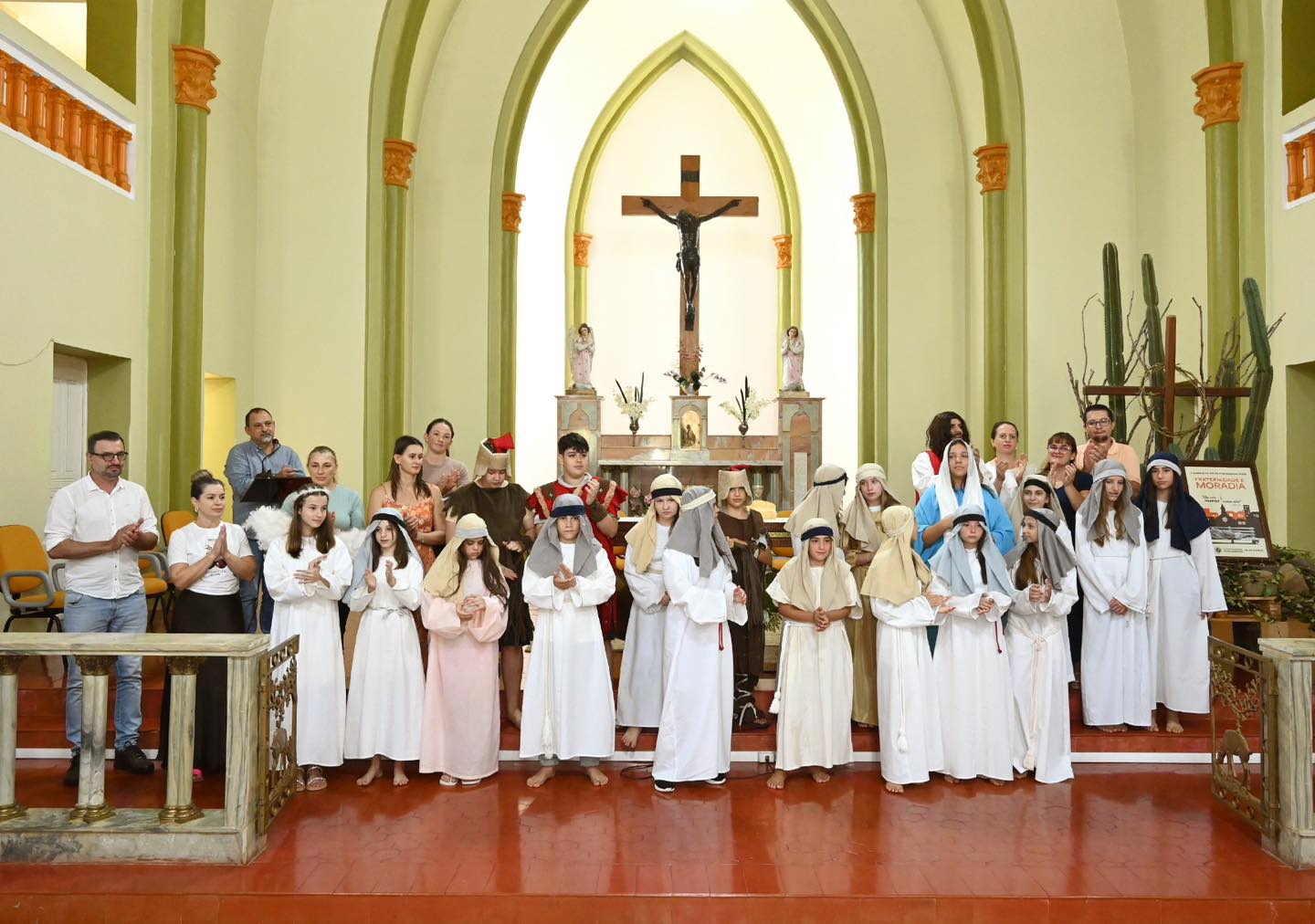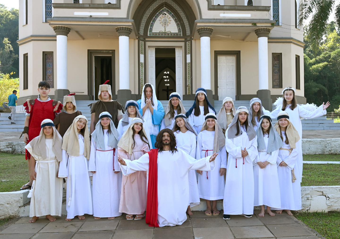 A apresentação relembrou um dos momentos mais marcantes da fé cristã: a paixão, morte e ressurreição de Jesus Cristo. Por meio das cenas, os alunos retrataram desde a Última Ceia, passando pelo julgamento e a crucificação, até a mensagem de esperança com a ressurreição.