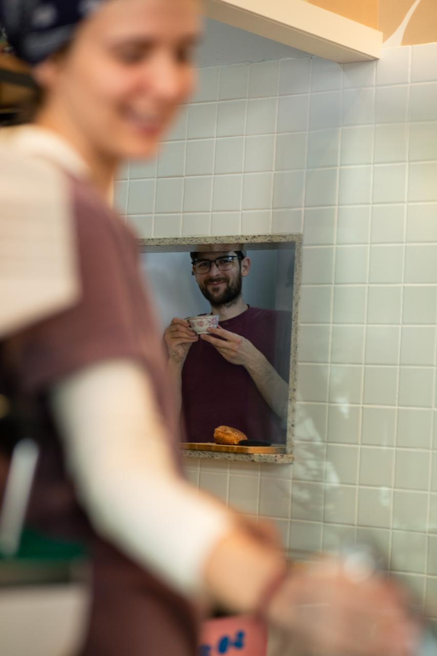 Além dos pães, o café também faz parte da proposta. A ideia surgiu a partir do interesse em oferecer uma bebida de qualidade, com grãos brasileiros de pequenos produtores, priorizando a torra cuidadosa.