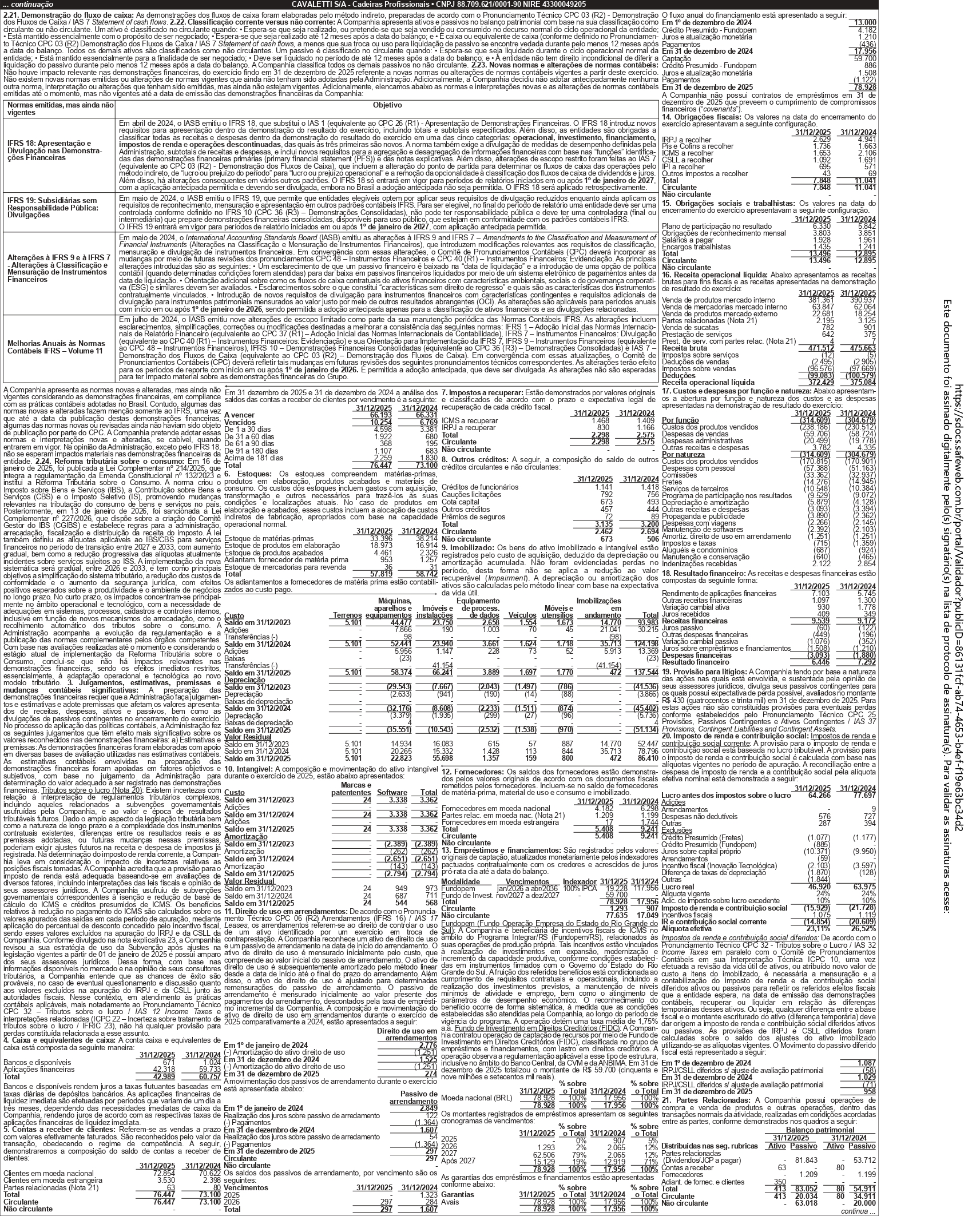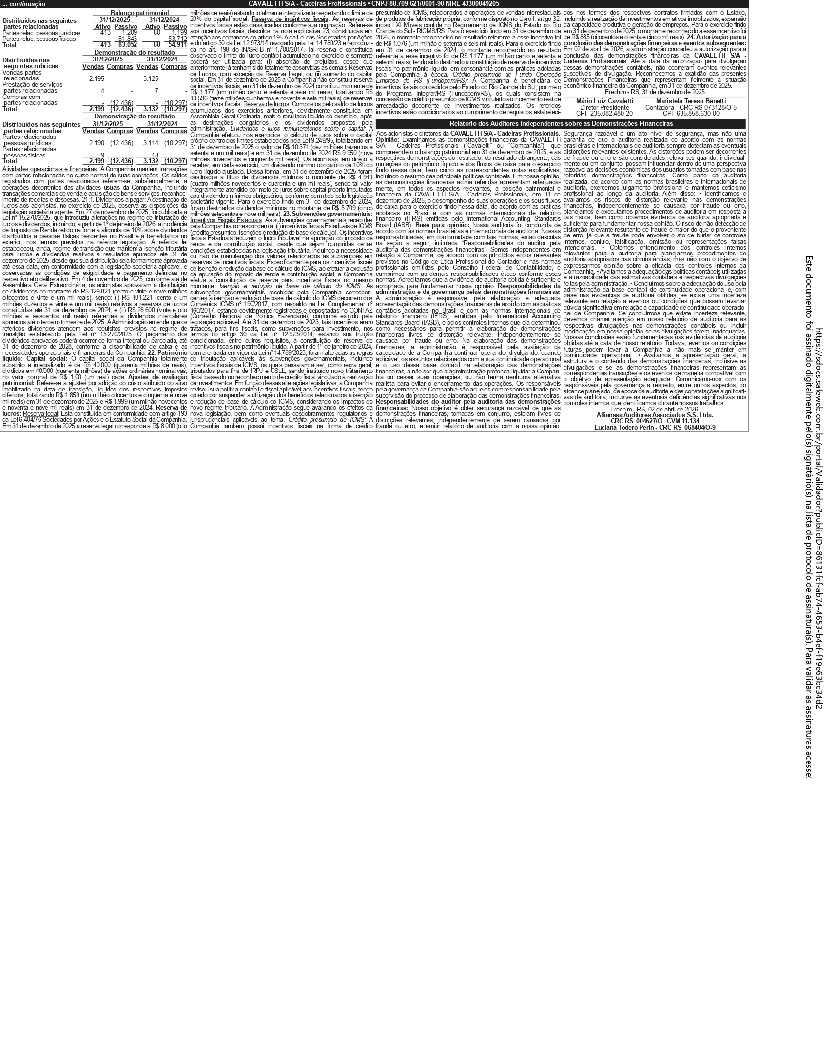 Demonstrações Financeiras CAVALETTI S/A - Cadeiras Profissionais 2025