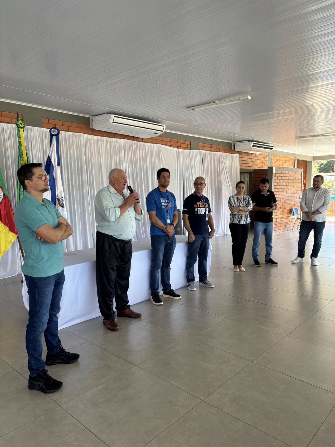 Participaram da cerimônia o prefeito Anderson Fernando Bagatini, o presidente da Câmara Ivaci Ogrodoski, o professor André Jucoski, representando o deputado Gilmar Sossella, ex-secretário do Trabalho e Desenvolvimento Profissional do Estado do Rio Grande do Sul, o representante do SENAI Eduardo Schneider, o instrutor Gilson Cardoso de Melo, a secretária de Educação Valéria Anselmini Zabot, o vereador Aneri Minela e demais lideranças.