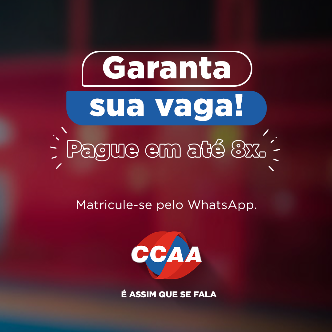 As últimas vagas ainda estão abertas para as turmas de maio, com condições especiais para novos alunos por tempo limitado. Não deixe essa chance passar. Fale agora com o CCAA Erechim pelo WhatsApp (54) 3321-3318 e garanta sua matrícula.