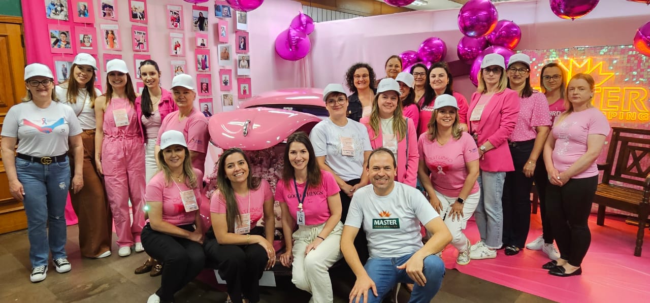 Atividade reuniu participantes vestidas de rosa em ação simbólica de incentivo à prevenção do câncer de mama