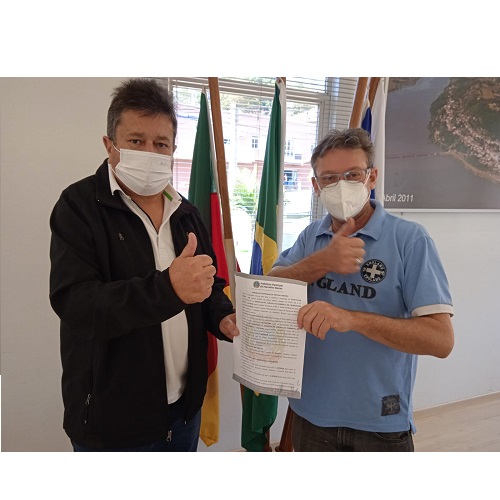 Prefeito Vannei Mafissoni acompanhou entrega de selo para o casal, Marines e Marcos Kruze. Só com trabalho se irá trazer desenvolvimento, disse Vannei